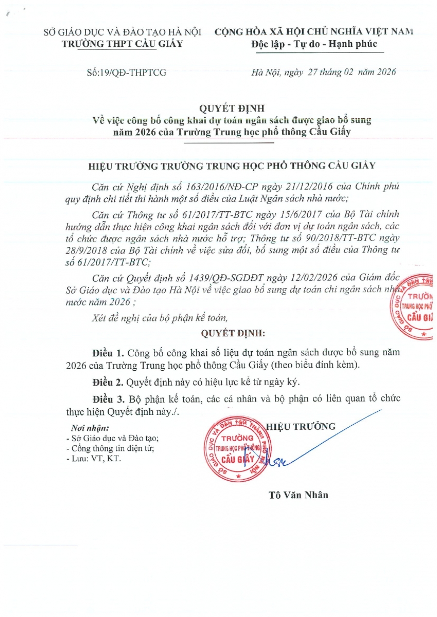 CÔNG KHAI BỔ SUNG DỰ TOÁN NĂM 2026