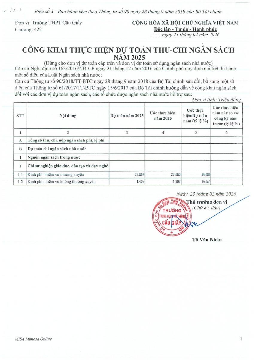 CÔNG KHAI THỰC HIỆN DỰ TOÁN NĂM 2025