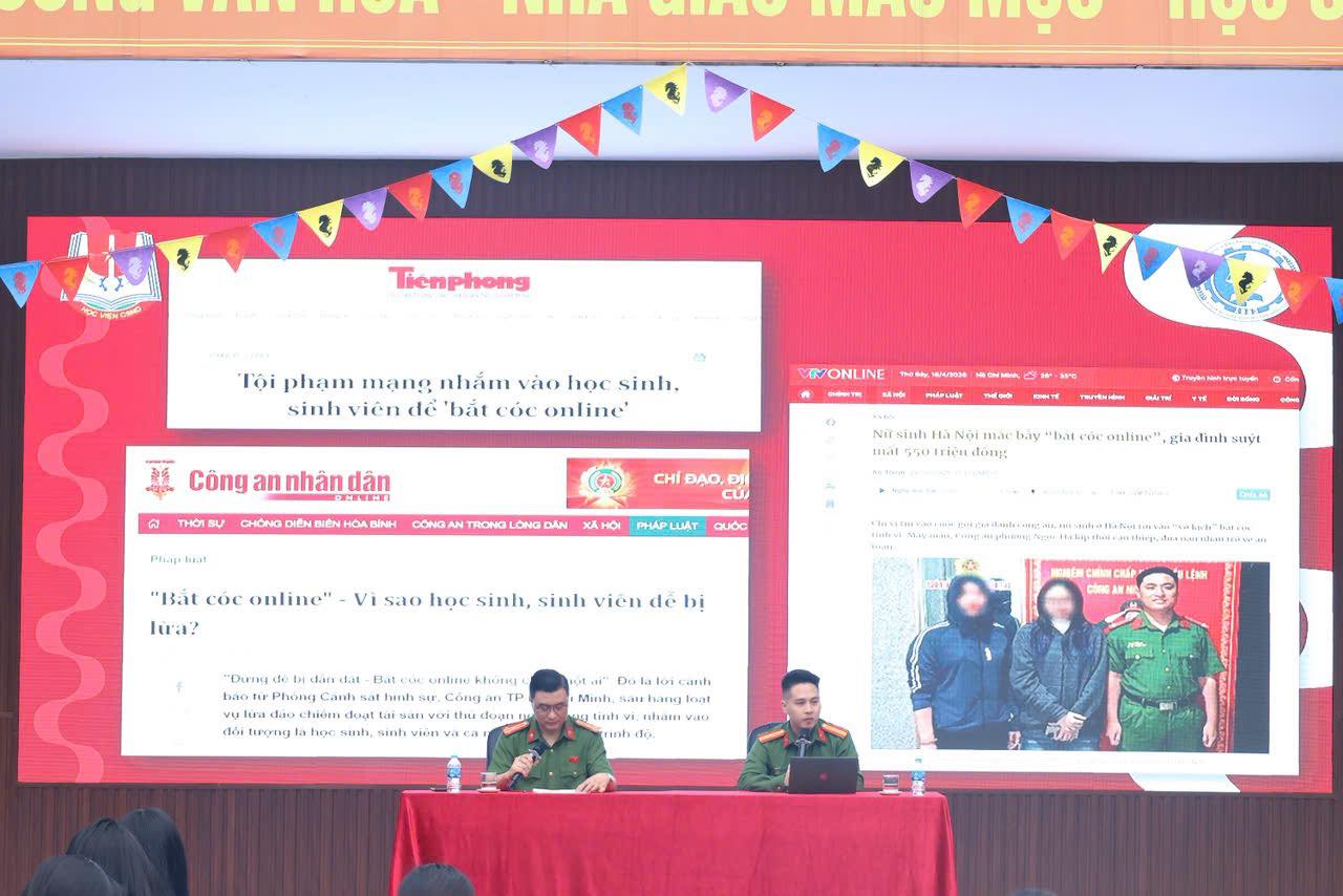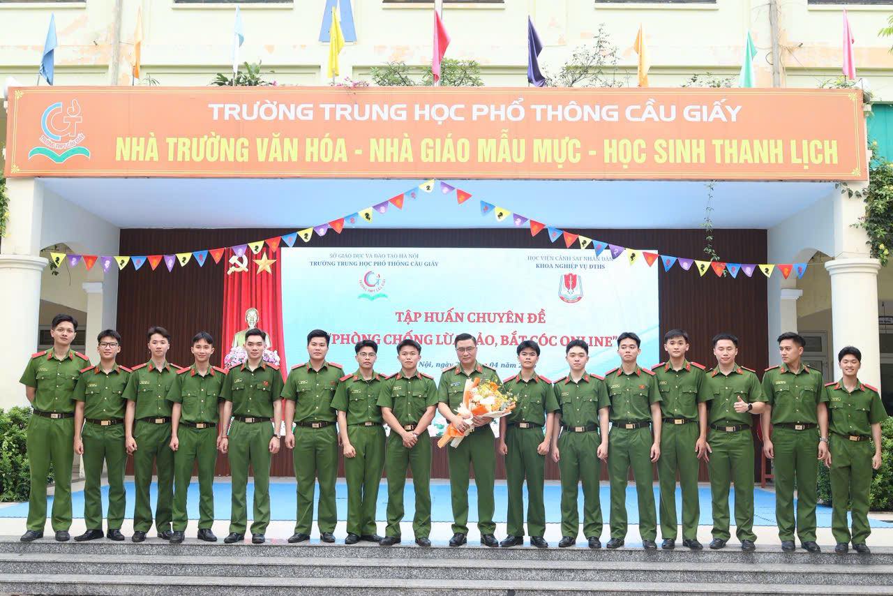Thực hiện Công văn số 1529 của Sở giáo dục và đào tạo Hà Nội về tổ chức chương trình tuyên truyền phổ biến giáo dục pháp luật, ngày 20/4/2026 trường THPT Cầu Giấy đã phối hợp cùng Học viện Cảnh sát nhân dân tổ chức buổi tập huấn - tuyên truyền pháp luật với chủ đề "Phòng, chống lừa đảo, bắt cóc trực tuyến từ góc nhìn chuyên gia"